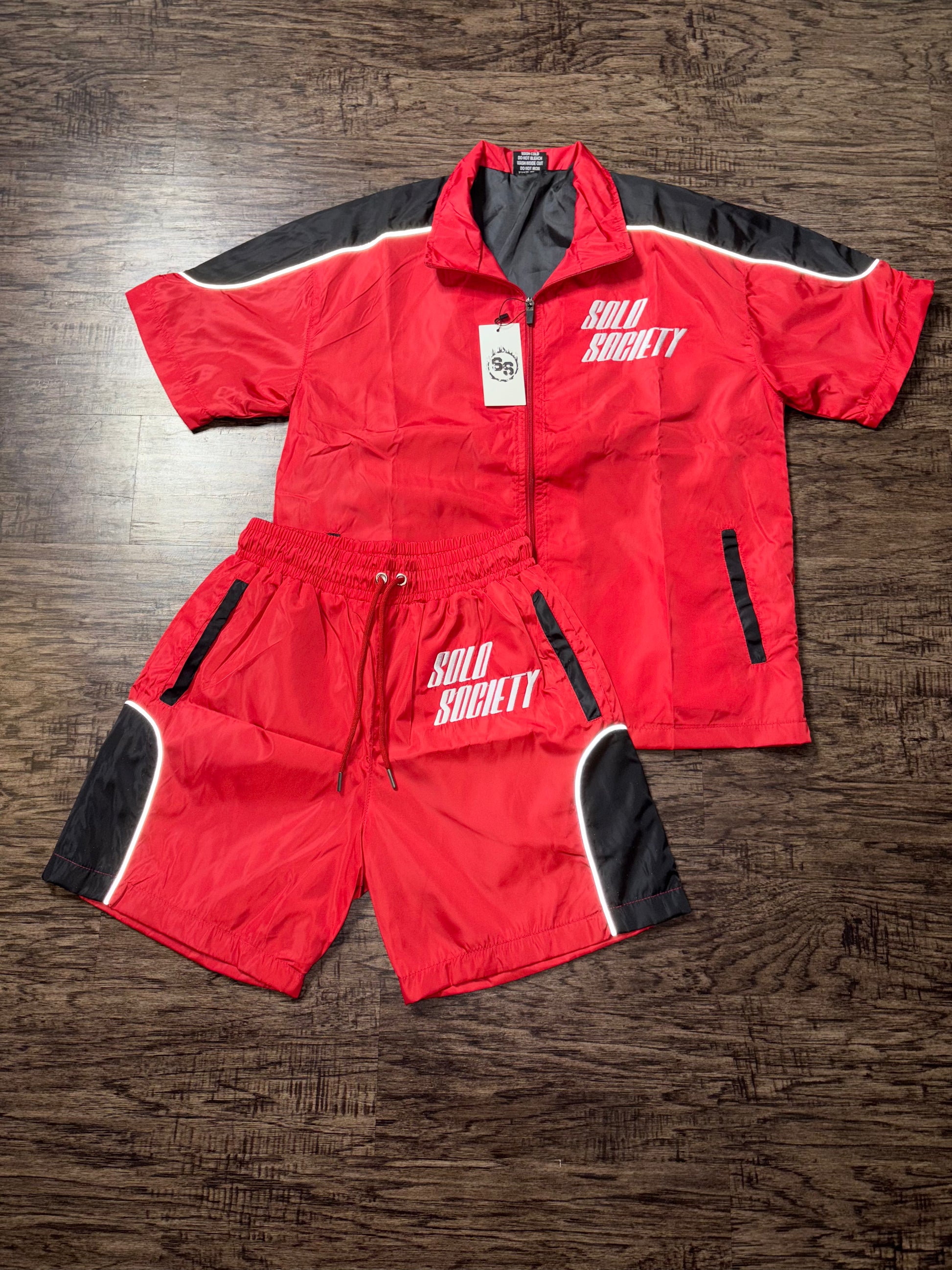 Windbreaker short set red
